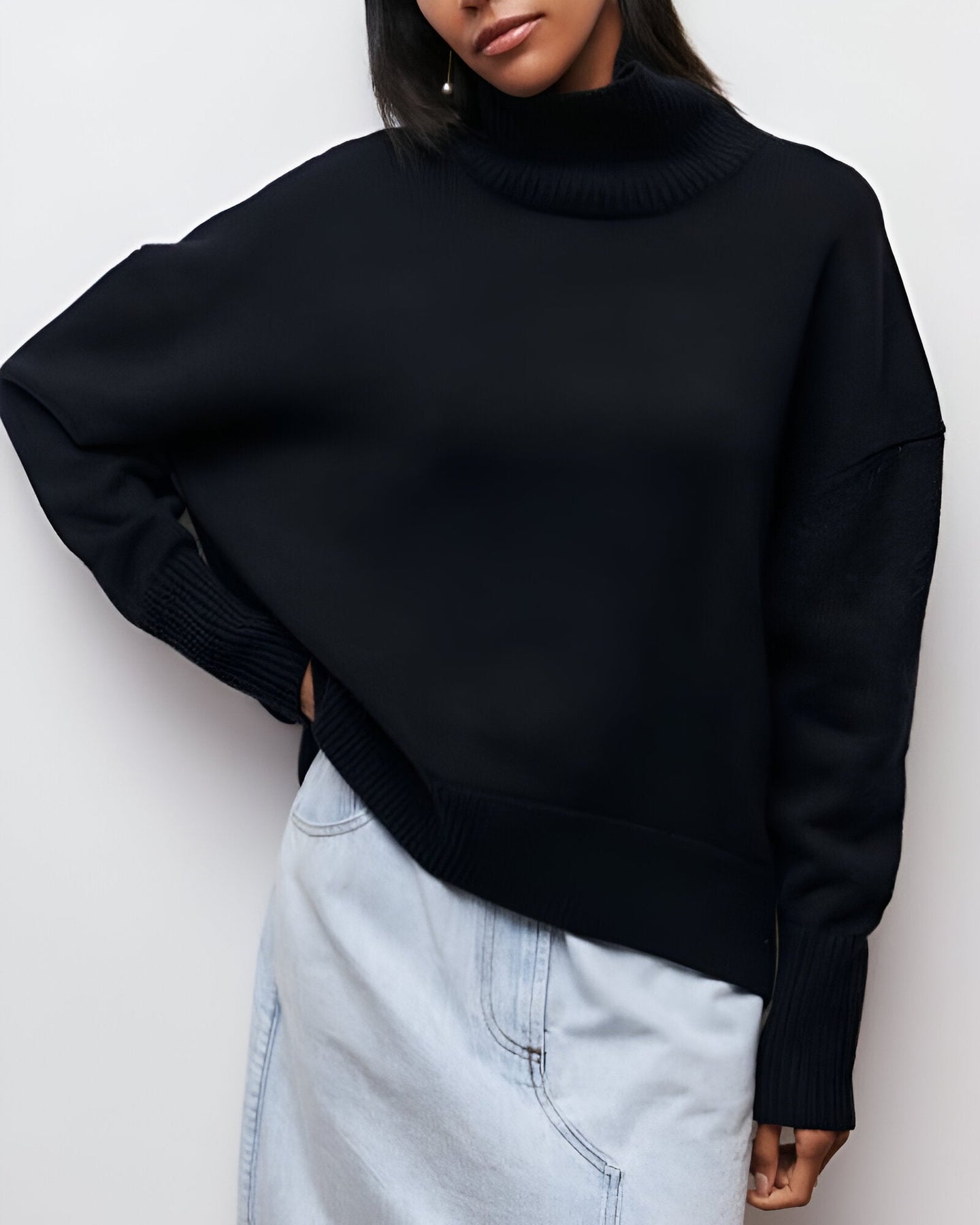 • ✔️ Col roulé haut – garde la chaleur tout en restant élégant